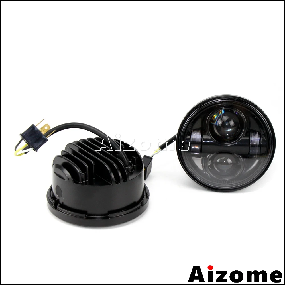 Motorcycle H4 Bulb Socket Dual Headlamp Aluminum Projector Light 4.65" LED Headlight For Harley Dyn