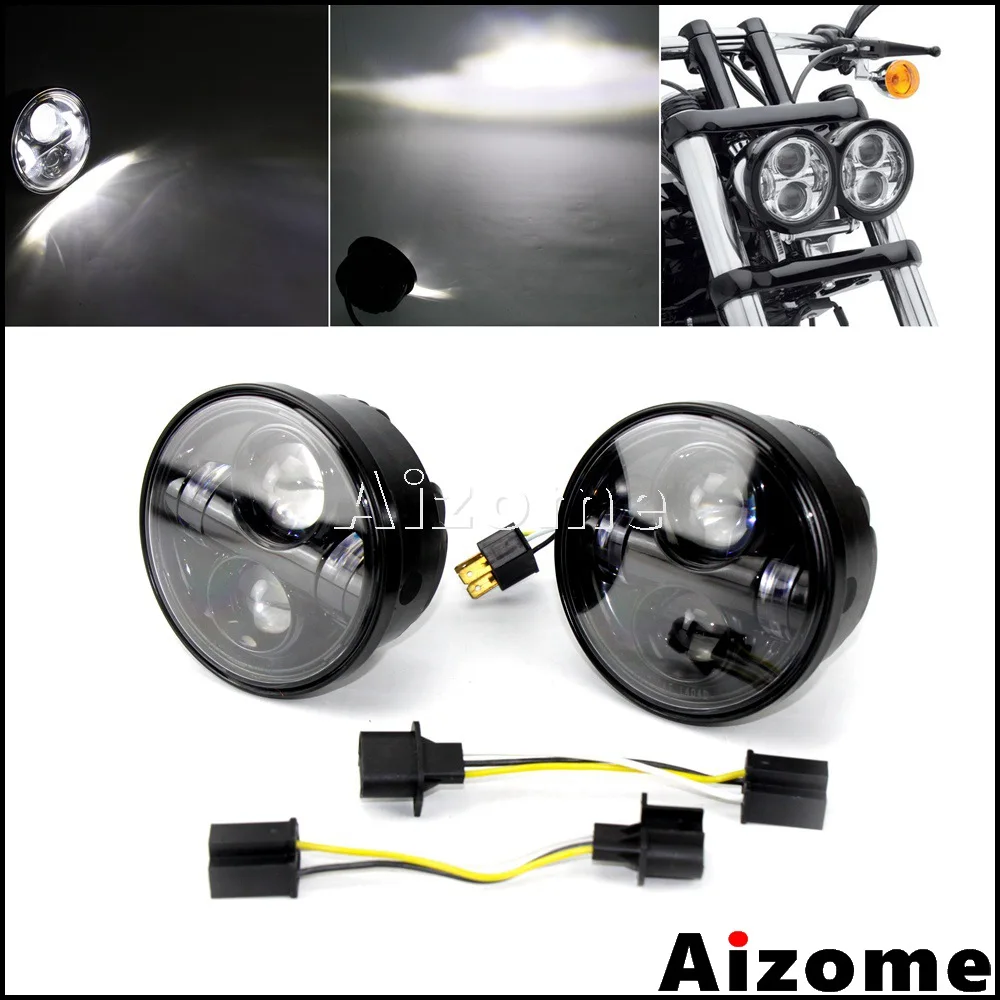 Best Quality Motorcycle H4 Bulb Socket Dual Headlamp Aluminum Projector Light 4.65" LED Headlight For Harley Dyn